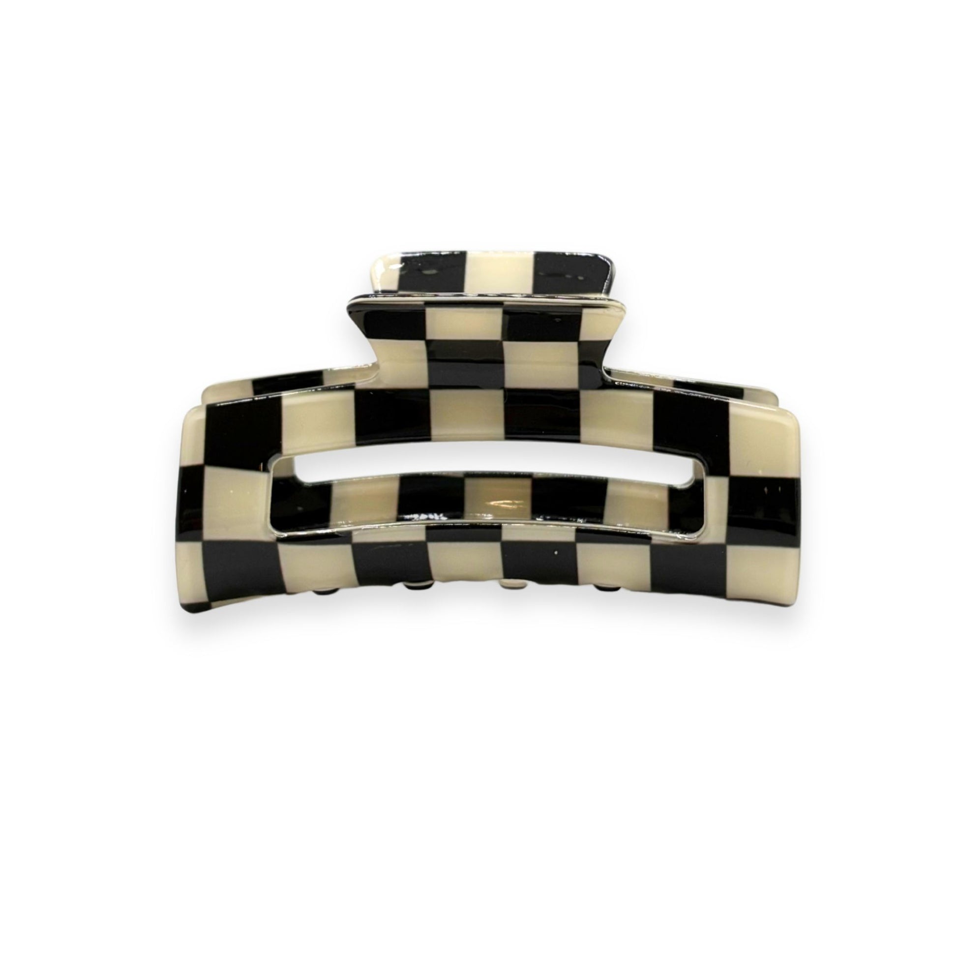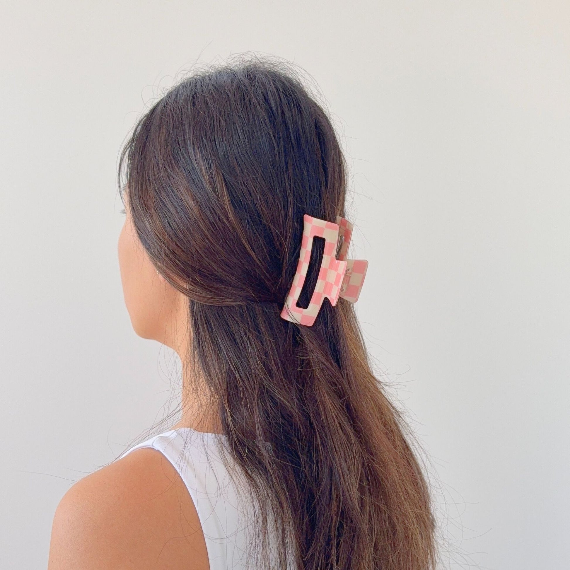 This hair claw clip features a trendy checkered pattern that adds a bold, stylish statement to your look. Designed for a secure hold, it’s perfect for enhancing your everyday hairstyles.