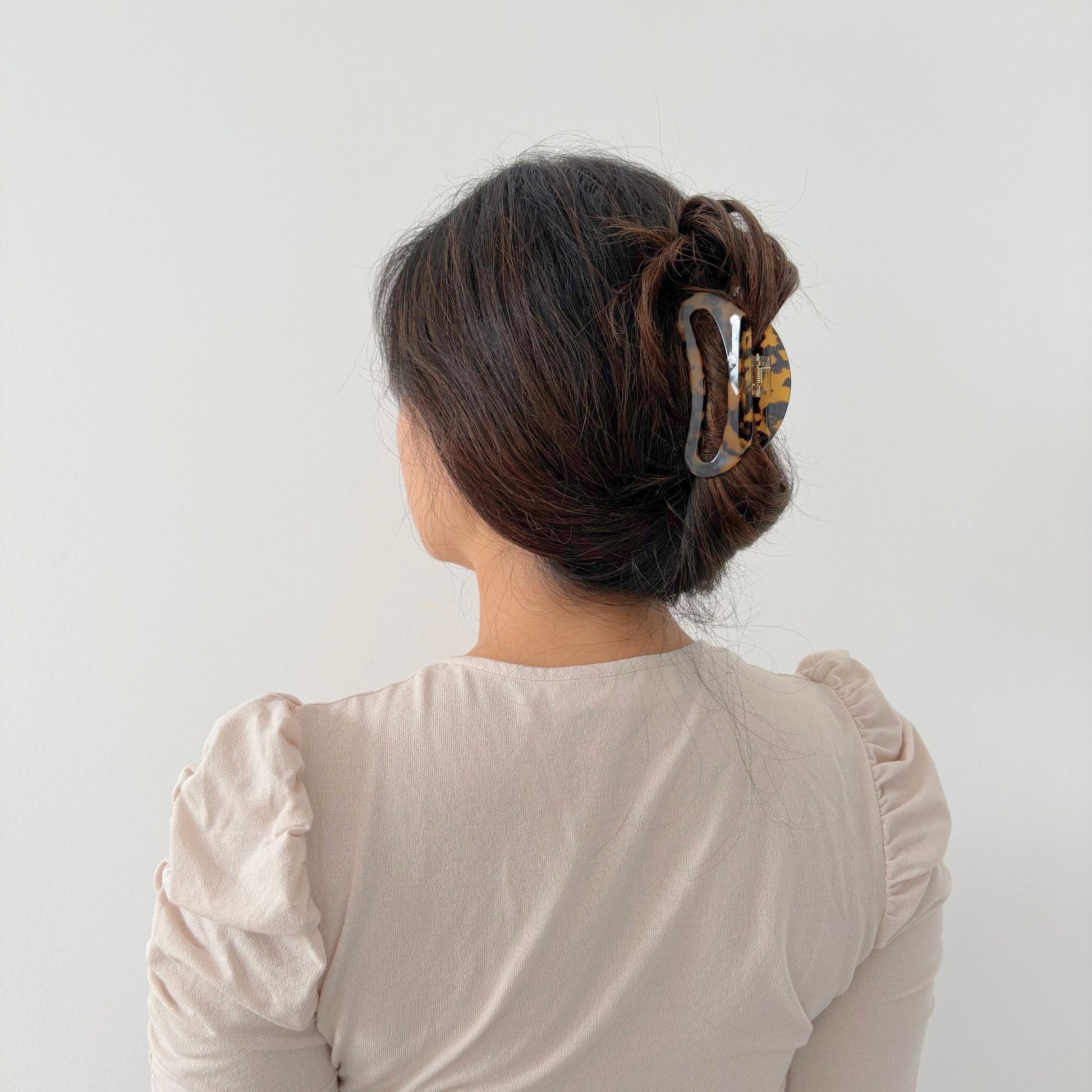 This tortoise hair claw clip features a curved design and a classic pattern that never goes out of style. It’s a timeless accessory for effortless, everyday wear. Measures approximately 3.5".