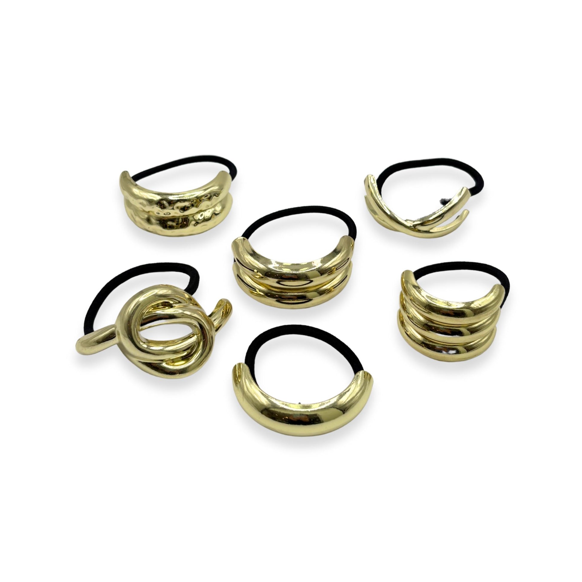 This set of 6 hair ties features a sleek metal design that adds a modern, edgy touch to your ponytail or bun. Durable and stretchy, they provide a secure hold without tugging or damaging your hair.